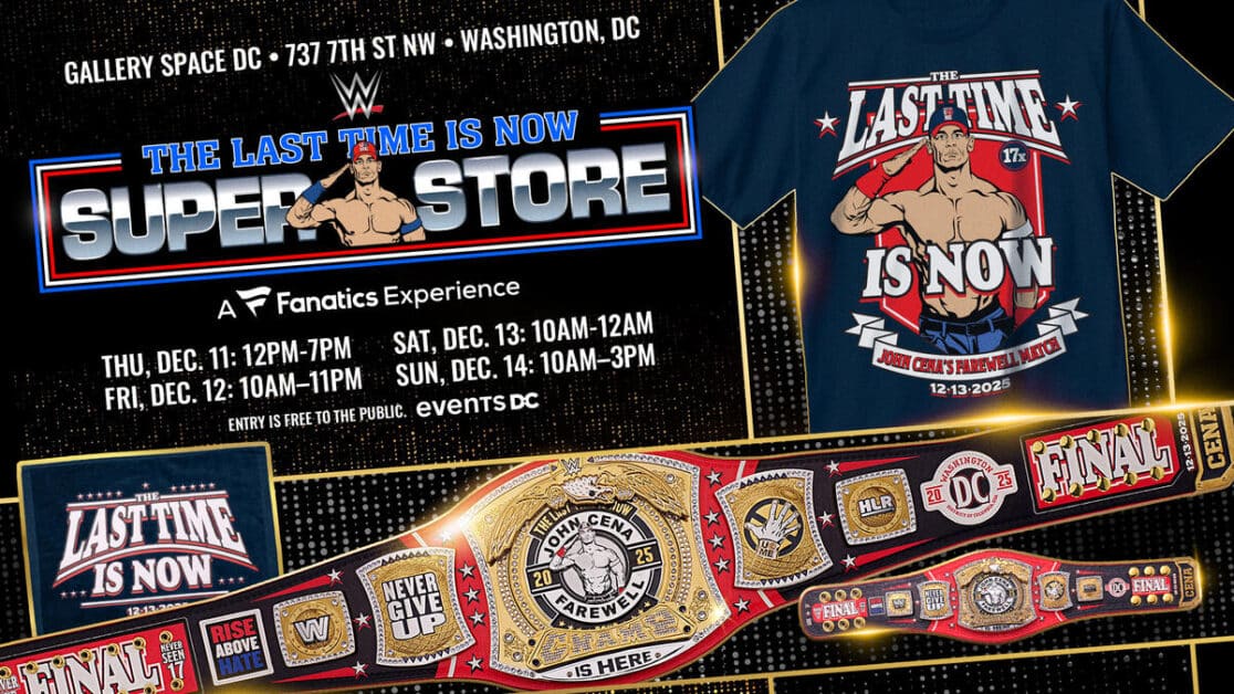 वाशिंगटन, डीसी में इतिहास रचा जाएगा, क्योंकि जॉन सीना शनिवार की रात के मुख्य कार्यक्रम में गुंथर के खिलाफ अपने अंतिम मैच में प्रतिस्पर्धा करेंगे, जिससे द सेनेशन को “द नेवर सीन 17” को रिंग में कदम रखने का आखिरी मौका मिलेगा। द लास्ट टाइम इज़ नाउ सुपरस्टोर गुरुवार, 11 दिसंबर से रविवार, 14 दिसंबर तक खुला रहेगा।