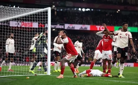 हालाँकि, गनर्स को रक्षात्मक चूक के लिए लगभग दंडित किया गया था जब विलियम सलीबा के गलत बैकपास पर डेविड राया गलत पैर मार बैठे थे। कॉनर ब्रैडली ने दुस्साहसिक चिप का फायदा उठाने का प्रयास किया, लेकिन उनका प्रयास क्रॉसबार से टकरा गया, जिससे आर्सेनल की शर्मिंदगी बच गई। इसके बाद लिवरपूल प्रतियोगिता में आगे बढ़ गया, उसने पीछे से लचीलापन दिखाया, मिलोस केर्केज़ ने हाफ टाइम से पहले साका को करीबी सीमा से रोकने के लिए एक महत्वपूर्ण ब्लॉक का निर्माण किया।