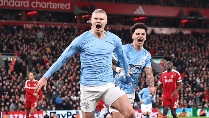 मैनचेस्टर सिटी ने एनफील्ड में लिवरपूल को 2-1 से हराकर नाटकीय स्टॉपेज-टाइम विजेता बनाया, जिससे रेड्स का आठ मैचों का अजेय होम रन समाप्त हो गया और प्रीमियर लीग खिताब की दौड़ मजबूती से जीवित रही।