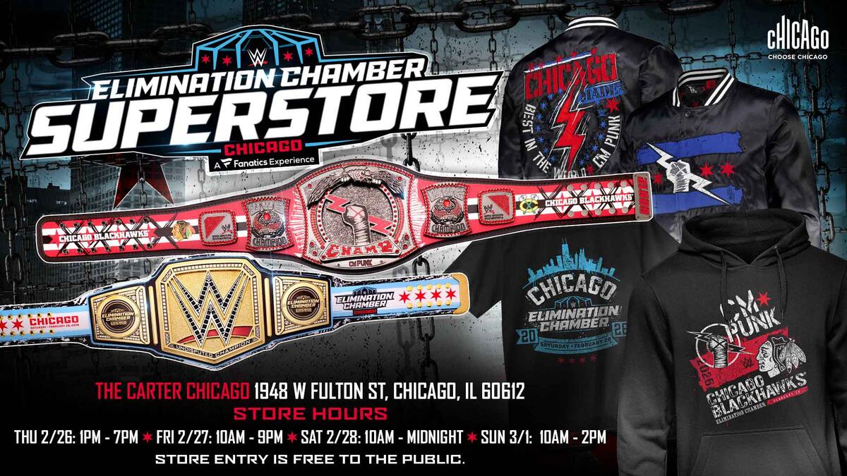 गुरुवार, 26 फरवरी से रविवार, 1 मार्च तक, डब्ल्यूडब्ल्यूई यूनिवर्स द रोड टू रेसलमेनिया के सबसे प्रतीक्षित पड़ावों में से एक के लिए तैयारी करने के लिए शिकागो में आधिकारिक डब्ल्यूडब्ल्यूई एलिमिनेशन चैंबर स्टोर का दौरा कर सकता है।