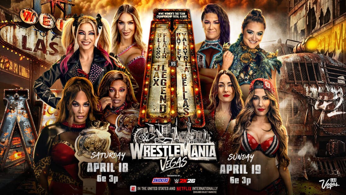 WWE महिला टैग टीम चैंपियंस निया जैक्स और लैश लीजेंड रेसलमेनिया में फैटल 4-वे टैग टीम मैच में चार्लोट फ्लेयर और एलेक्सा ब्लिस, बेली और लायरा वाल्किरिया और द बेला ट्विन्स के खिलाफ अपने खिताब का बचाव करेंगी।